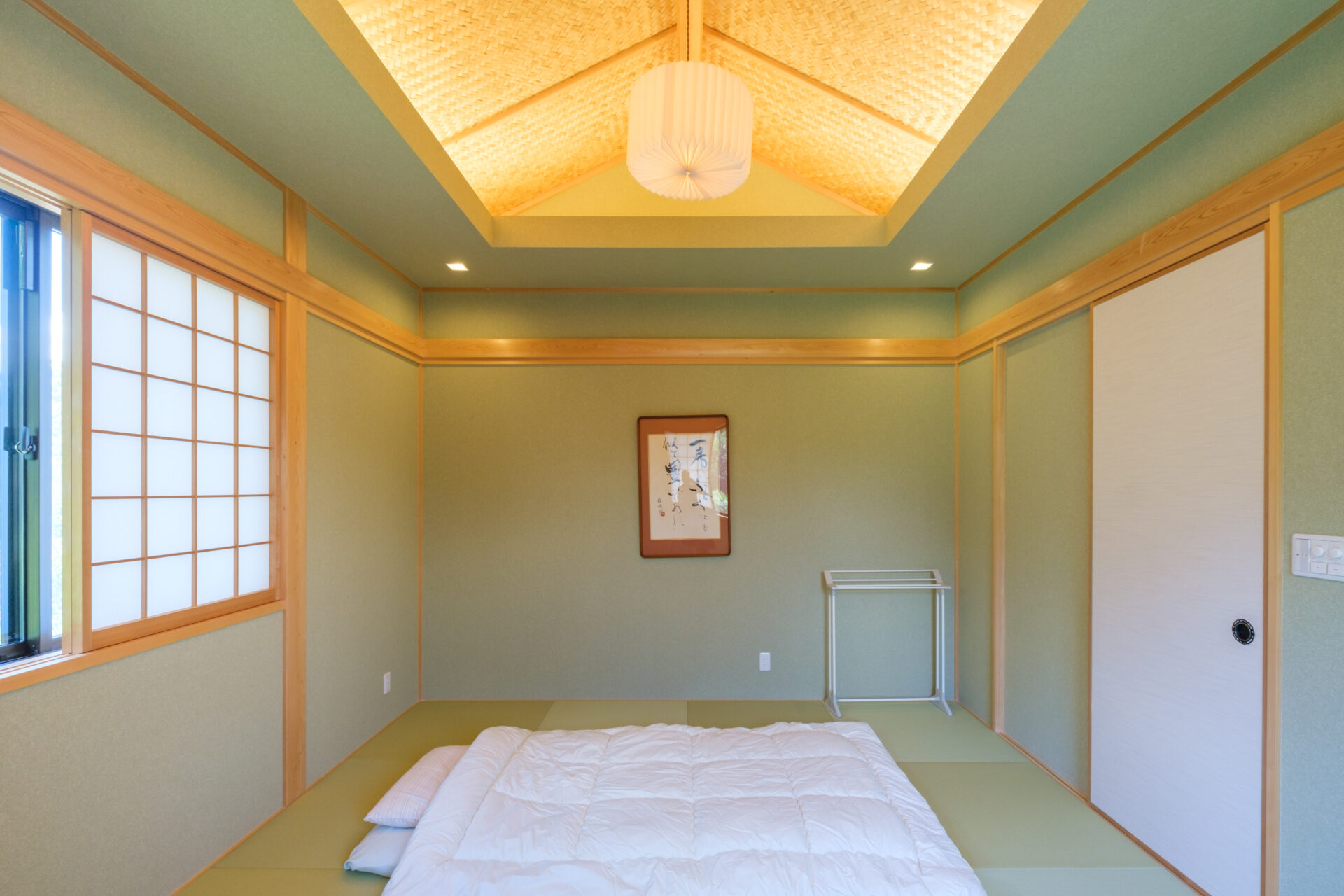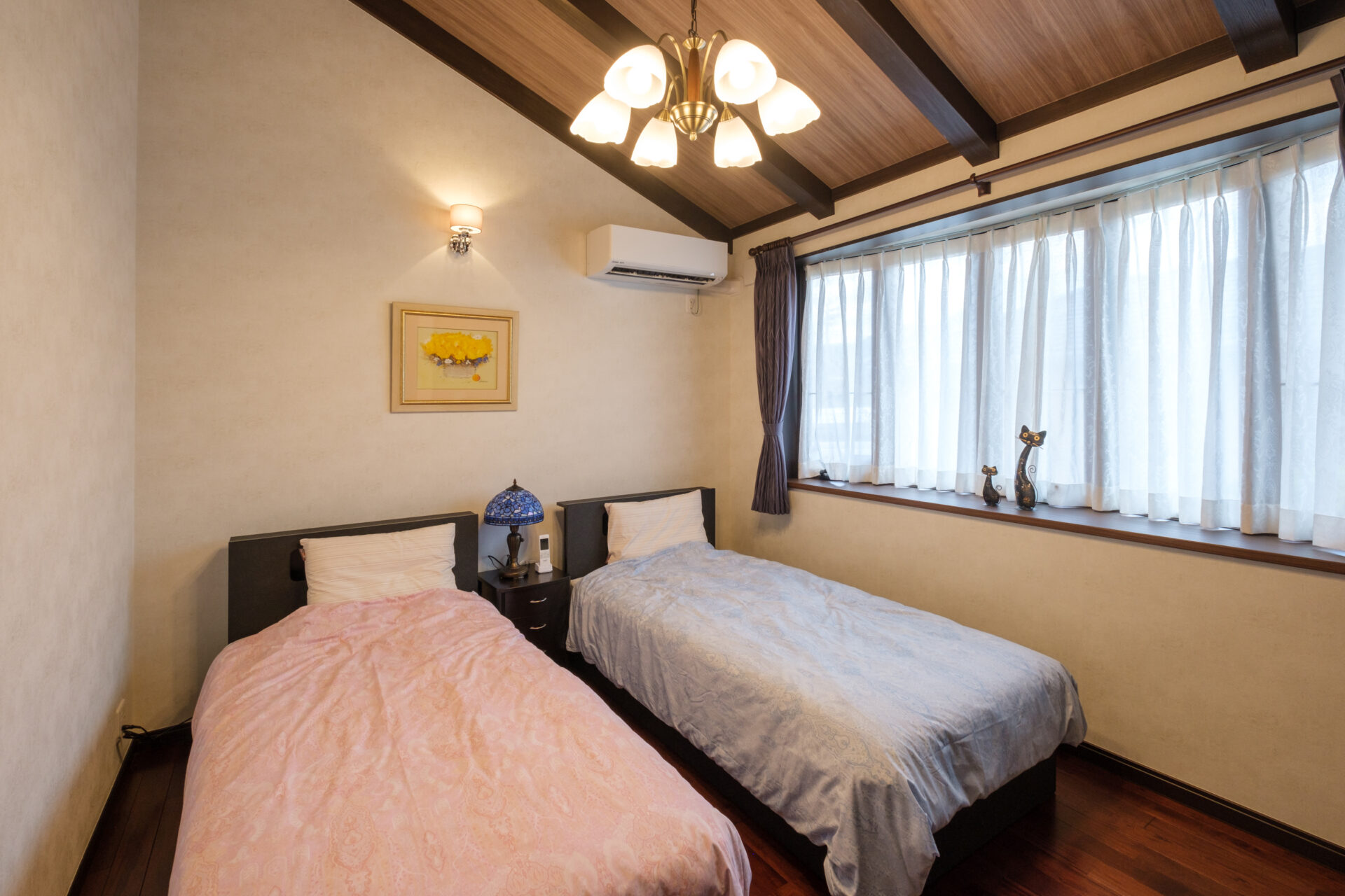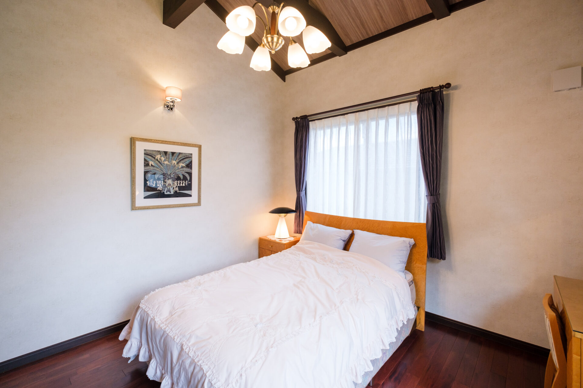 寝室は和室、ダブルルーム、ツインルームの3部屋。それぞれ隣室が気にならないよう配置されており、プライベートを確保した計画になっています。日常では味わえない静かな時間をお過ごしいただけます。